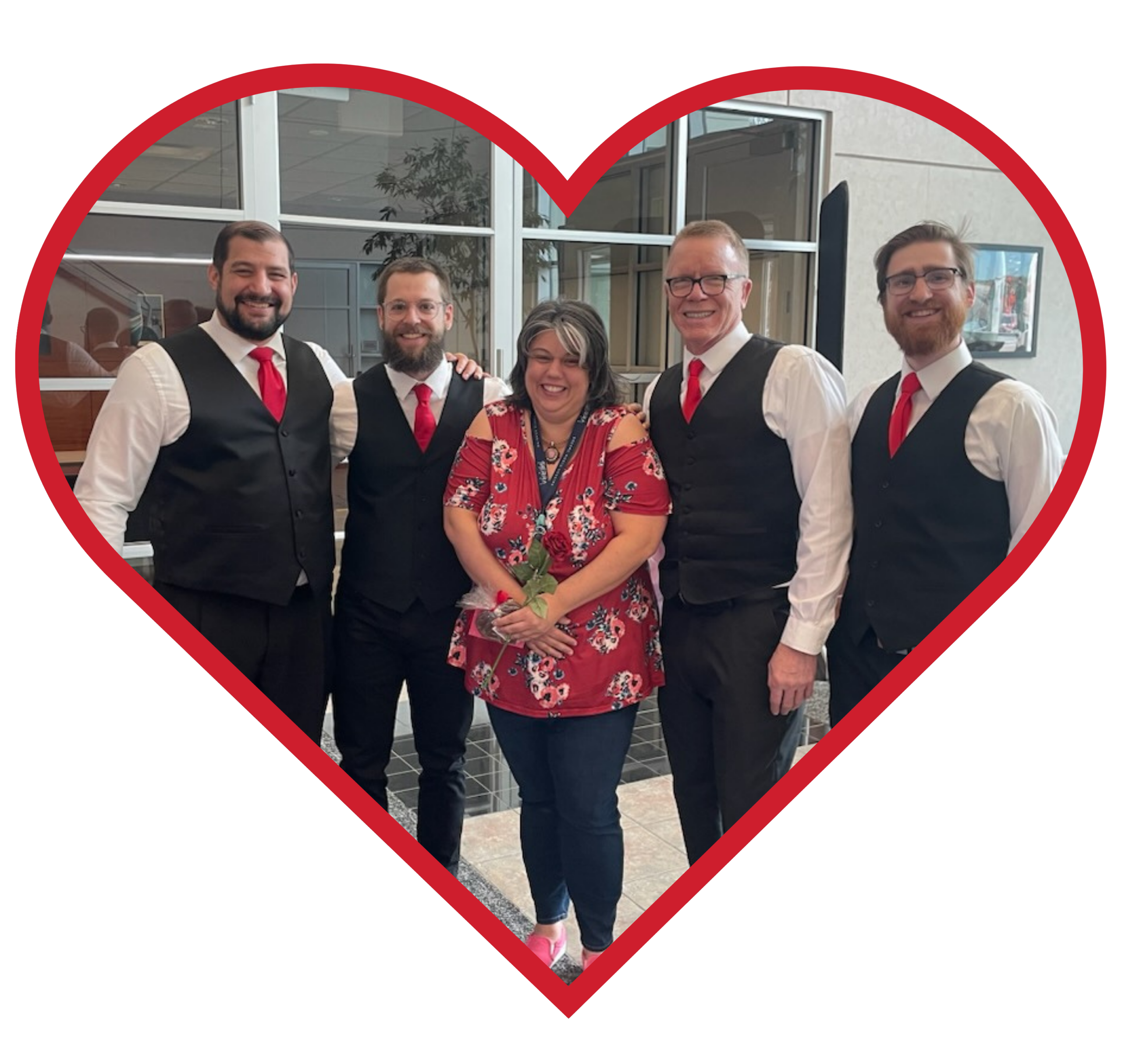 Surprise your loved one with a unique and memorable gift—a personalized Singing Valentine delivered by one of our talented quartets!